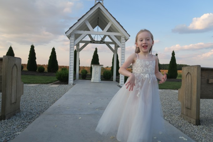 It’s been a year and a half in the making: Finally, this past weekend you were the flower girl of my friend Kaylie’s wedding in Arcadia, Indiana.