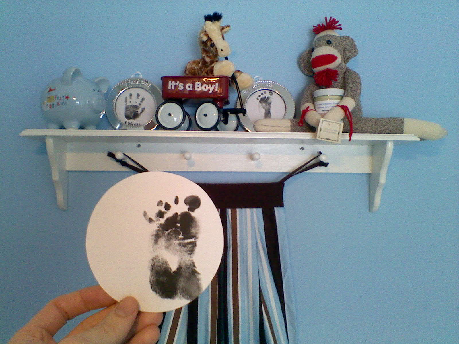 In our house, these hand-prints and footprints are more than just a traditional keepsake. They also tell a story.  A story that has already been written, just waiting for the time to be told.  Oh, the places he’ll go!