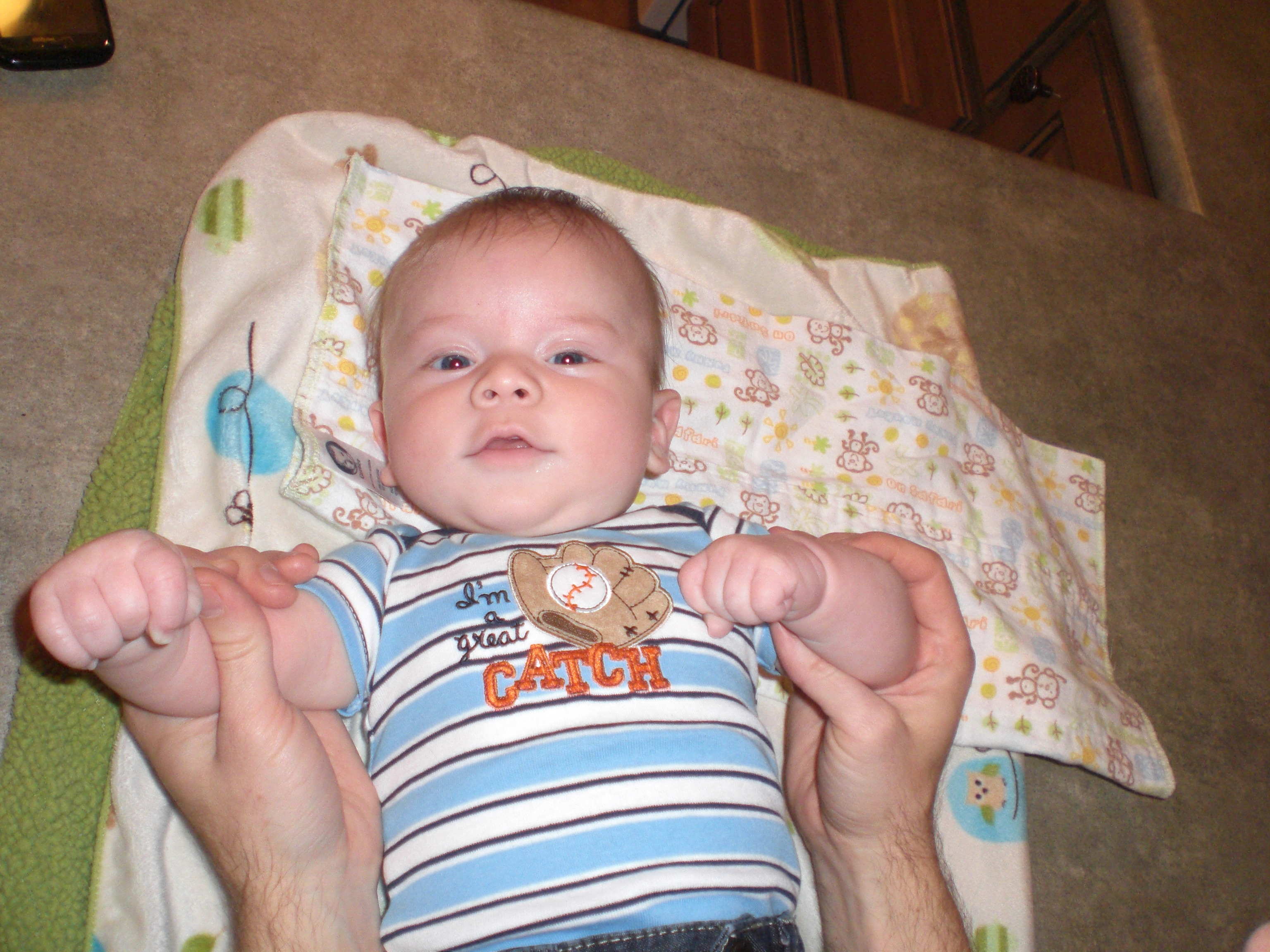 Through a strategy my wife invented and perfected, and that I do my best to emulate, Jack must be wrapped up into a “baby burrito” (tightly in a blanket). Then he must be rhythmically rocked in long, quick swoops. If done right, and he is tired enough, Jack becomes hypnotized and soon stops fighting the “sleep monkey”.