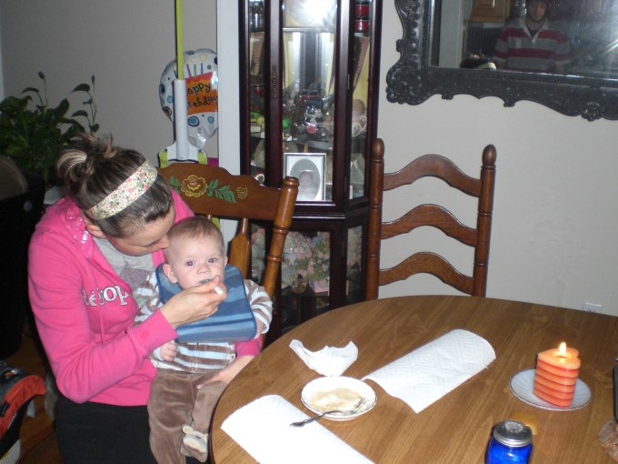 This picture was taken in complete darkness, other than the candle on the table. (I used the flash on my camera.)