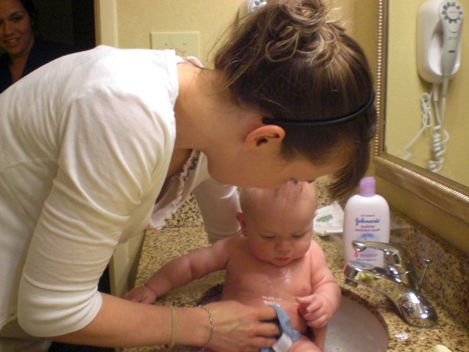 But thank God the power is returning quicker than we expected and again, that we are even alive and still have houses to go home to.  Last night in the hotel lobby I talked to a man and his wife who are staying here because they lost their home in the tornado.  For those who follow my “dad from day one” series, imagine what must be going through my head concerning our move to Alabama back in December.  We have now survived four of unemployment with a newborn, then not even a month into my new job, we are spared from the deadliest tornado since 1974, and possibly since 1932.  According to Wikipedia, over 350 people were killed by the tornadoes; 250 of those being in Alabama alone.