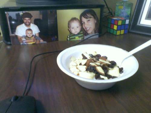 My coworker went during his lunch break and bought the necessary ingredients and has now converted to “Nick Shell’s Swiss Oatmeal” for breakfast. Predictably, he was skeptical of eating cold oatmeal. But once he tried it, he realized the coldness is part of the Swiss charm- plus, it’s less hassle because it doesn’t require an extra step of having to heat it up.