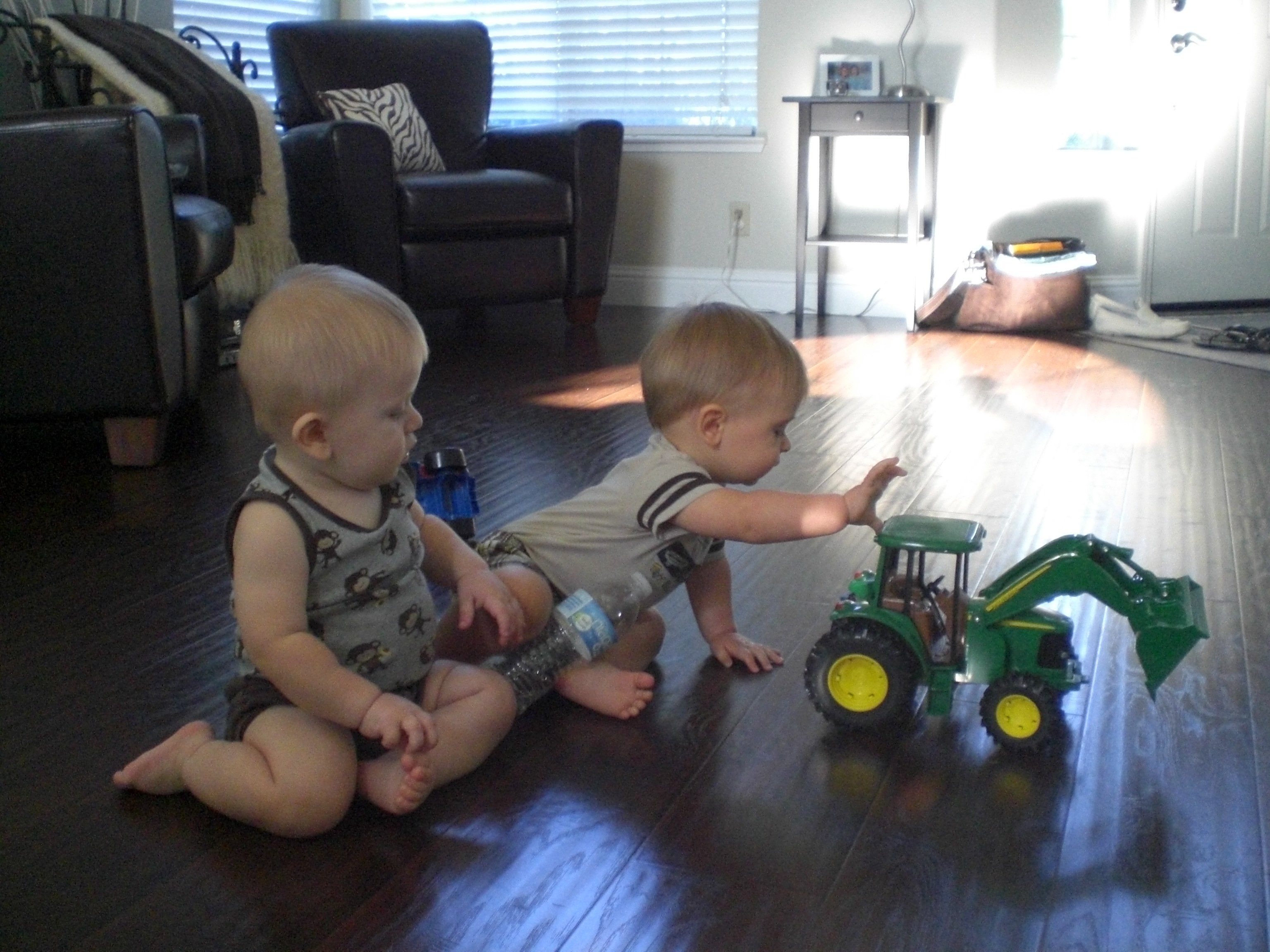 It was funny to observe Jack and Evan (Paula’s son) playing next to each other from the same toy box. Several times they reached for the same toy, then they would both simultaneously back off from it, as if to say, “No, it’s cool. You go ahead. You saw it first.”
