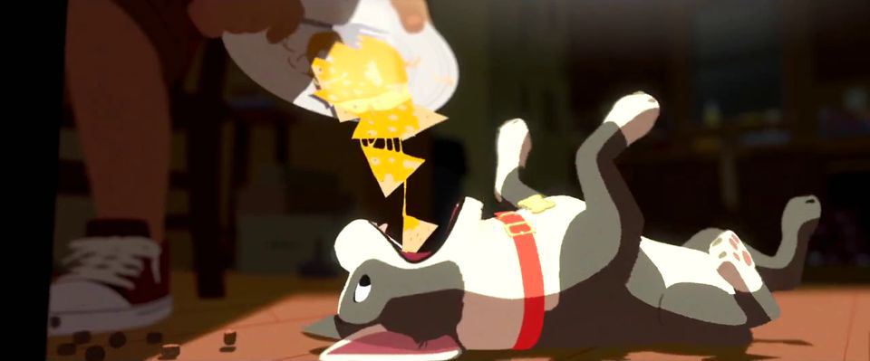 The animation style is clever and unique, as the camera points to the floor, where a man offers a stray puppy a French fry, which leads to the man adopting the dog and naming him Winston. From there, the owner makes a habit of giving Winston table scraps on top of his bowl of dry dog food.