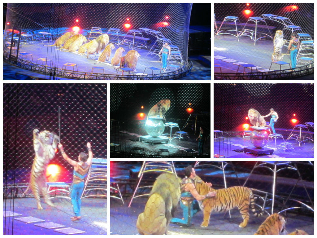 We saw many kinds of animals, including kangaroos, pigs, and elephants; but you told me that the lions and tigers were your very favorite part of the whole thing. It was pretty fascinating to see one man controlling all those big cats!