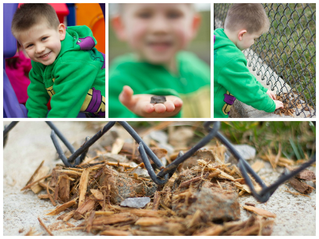 Jack then decided that our new spider friend needed a house! So he searched the playground for items he could use to build the house. He found rocks, mulch, and grass (so he could eat in the comfort of his home).