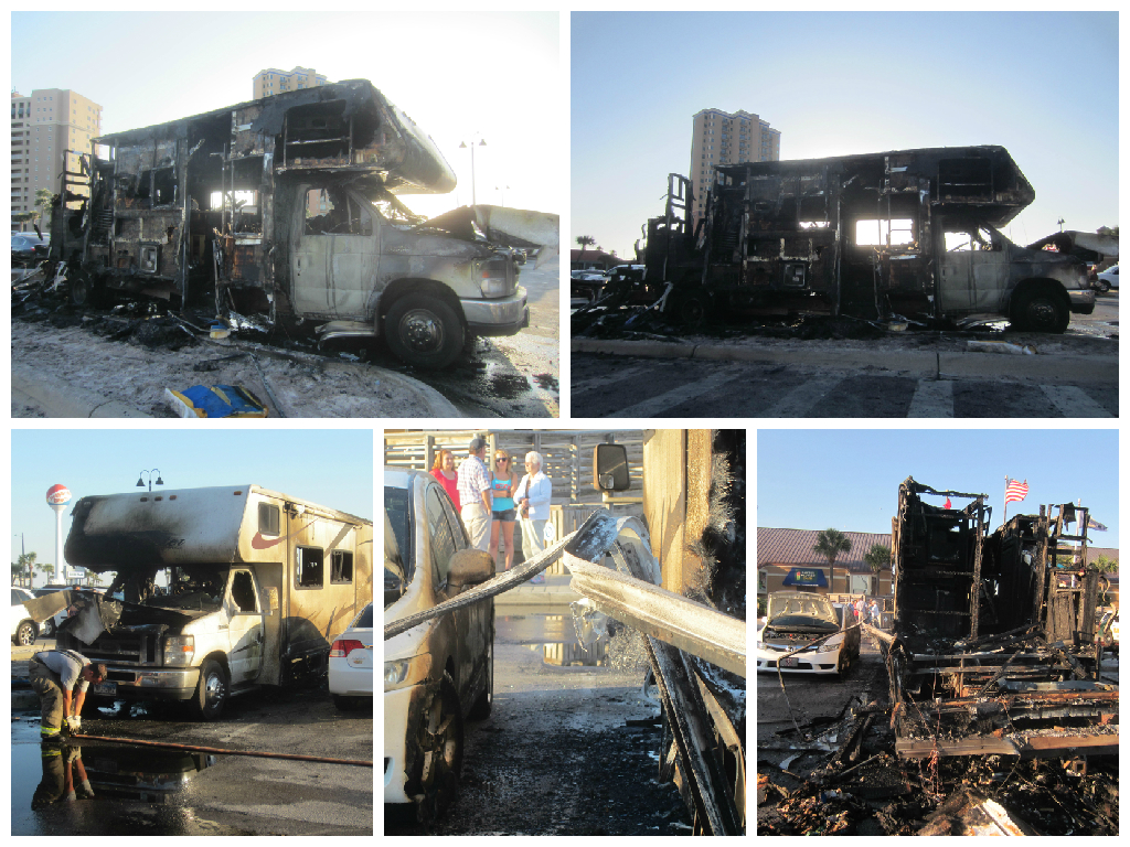 As you can see from my pictures, there were only charred remains of the RV. Even the car parked next to it took a major hit.