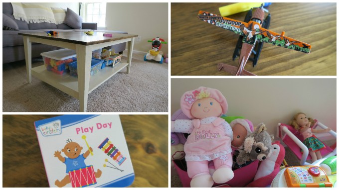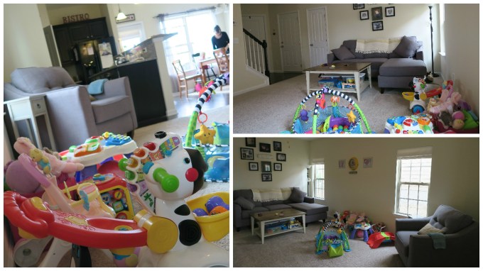 The funny thing is, we have a bonus room upstairs that could easily be “the playroom”. But it’s not central to where the action is: The kitchen is the epicenter of our home and the kitchen is adjoined to the living room, which has now used as a playroom, more than a living room.