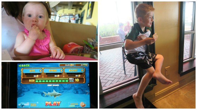 While we waited for the food to arrive, Uncle Joe and Aunt Rebecca helped you download fun dinosaur games on their phones for you to play.