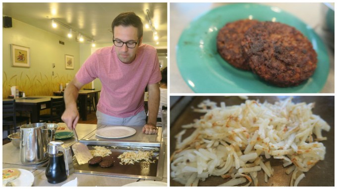 Hi, I’m Nick Shell, the manliest vegan on the Internet. (No other male vegan has ever disputed this!) And yes, I can confirm that a vegan can indeed dine at The Pfunky Griddle. Because I recently did…