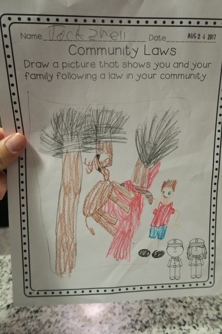 The way I found out you knew all this is when this week, you brought home a drawing. Taken out of context, your drawing could have seemed disturbing. But knowing that you drew this as a result of learning about the right way to use a gun, it quickly put things into perspective for me.