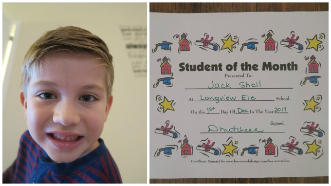 Mommy and I were very proud when we learned this week that you were awarded Student of the Month.