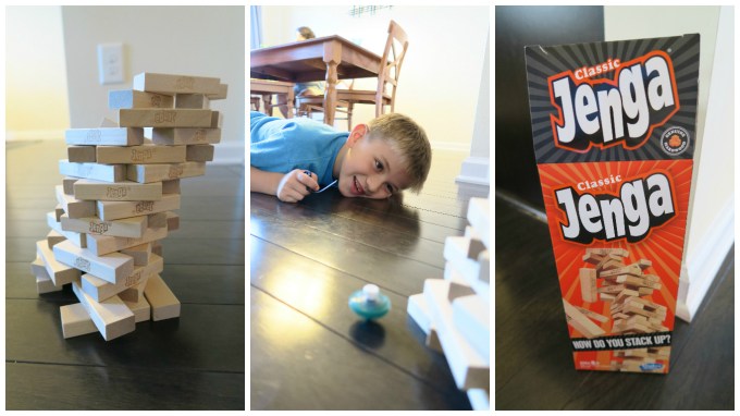And this past weekend you literally spent hours spinning these little propelled tops across the kitchen floor, attempting to crash down Jenga towers that you would build.