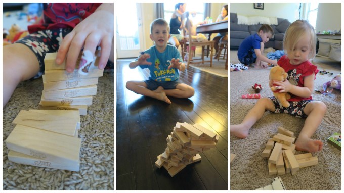 Good thing Mommy suggested you go through the closet and find a game to play. You made the original Jenga even better!