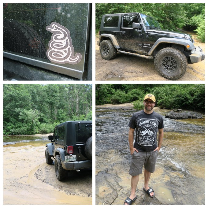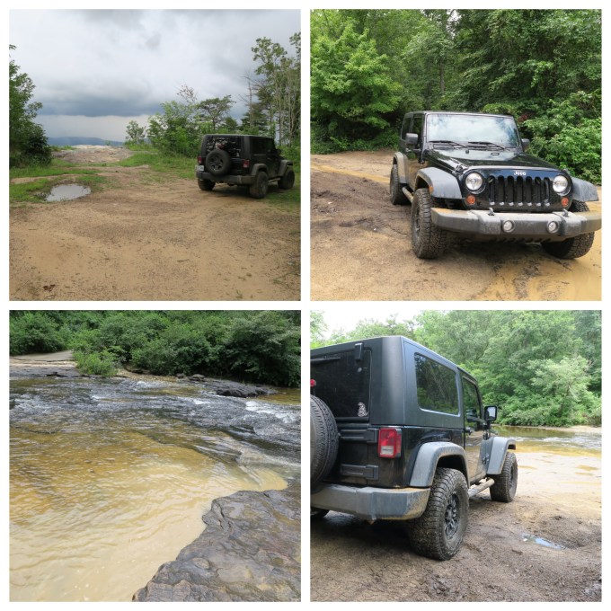 Keeping my 2010 Jeep Wrangler JK in 4 wheel drive, it was just no issue driving through giant mud puddles that stretched from one side of the road to the other; nor was it any struggle to cross the river itself.
