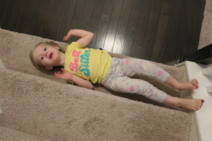 Apparently, you woke up earlier than you knew you were supposed to that morning, and decided to camp out on the very bottom stair- so that you technically were not downstairs.