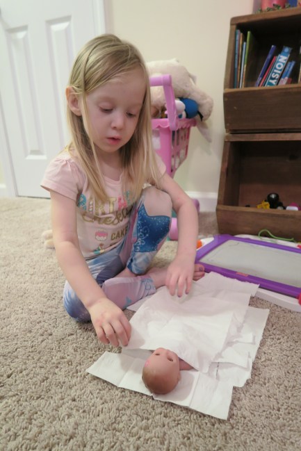 Then you determined that it was time to change the baby’s diapers, so you made her a new diaper with a few more of the tissues.