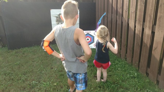 Because of your continued interested in learning how to shoot a bow and arrow, we have now set up a target range in our backyard.