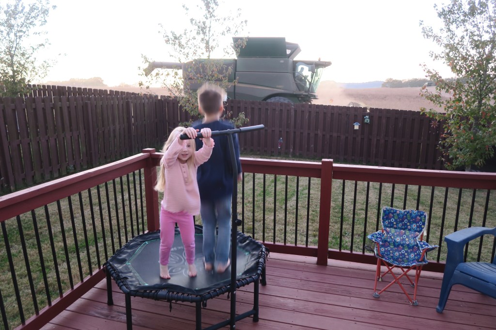 This week, it was time to harvest the crops. So after dinner Tuesday night, a man in a huge tractor drove right behind our house.