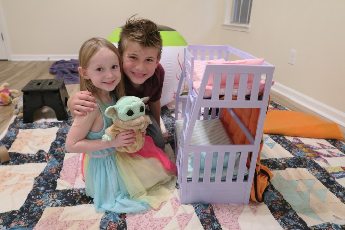 You had your brother bring down your doll bed. However, I don’t recall seeing any of your dolls in the bed: Only Baby Yoda!