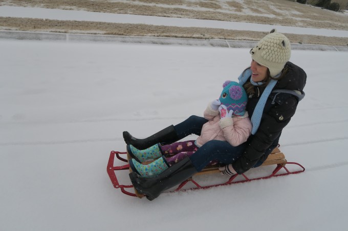Yesterday, Mommy and your brother took turns taking you down the cul-de-sac in our sled.