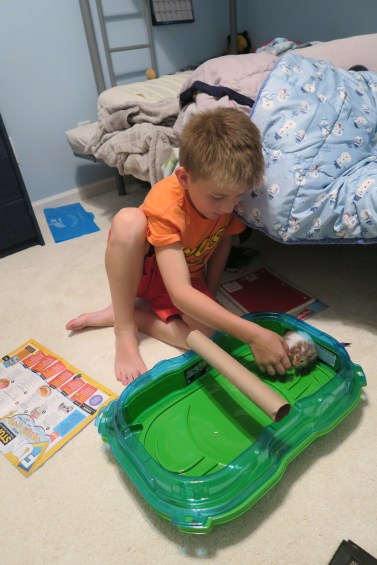 He seems to appreciate the change of scenery and environment as well. It’s interesting to watch him become obsessed with trying to rub his scent on it, but it doesn’t work since it’s plastic; as opposed to the wood shavings in his aquarium.