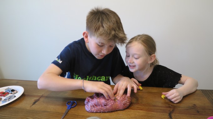 You decided to compile all the slime, ever, on our kitchen table; and then, using scissors, you performed surgery on the thing.