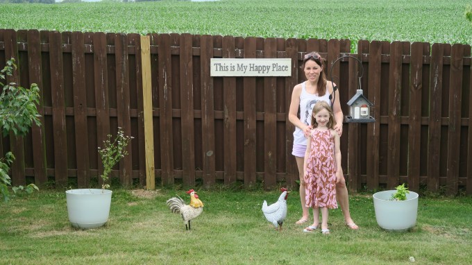 After we set them up in the backyard, Mommy decided our sign that hanging up on the fence needed to be repainted, since the words had completed faded. They originally read, “This is My Happy Place.”