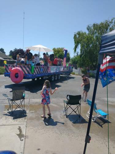 I was very surprised and confused to see Grandma’s neighbors pull out a bucket of water balloons and water guns to attack the participants in the parade.