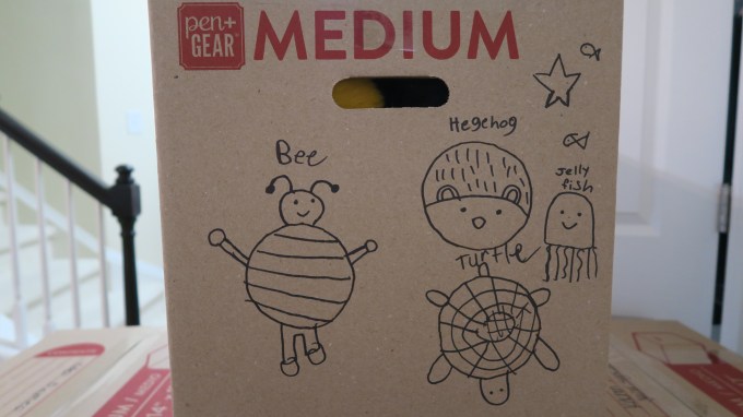 As we are constantly packing up our house and shipping out more boxes each couple of weeks we travel to our Alabama house, you have been taking it upon yourself to decorate the boxes first.