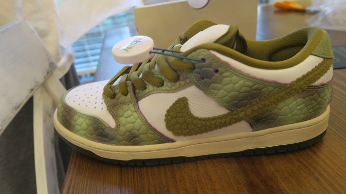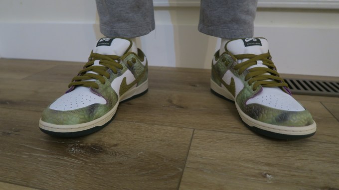 That means you get the cool Nike shoes you want for your 8th grade year: The Nike Skateboarding Dunk Low Alexis Sablone Chameleon shoes that change colors from green to purple as you wear them in.
