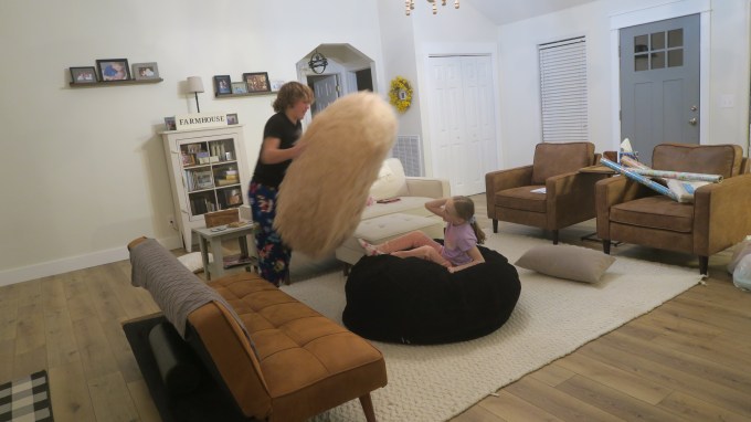 This eventually evolved into you turning her into a sandwich, between two beanbags.