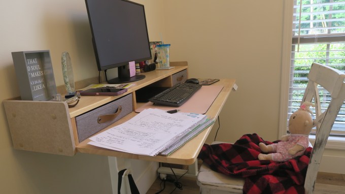 Yesterday morning before you left for school, I noticed your Warmies baby Gracie decided to try to help Mommy get a head start for work.