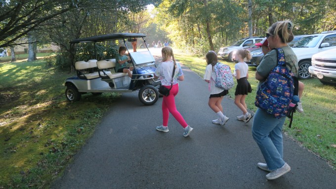 Uncle Andrew cooked all 80 burgers… and he let us use his golf cart to use as the taxi to usher the guests from the empty lot down the road where everyone parked.