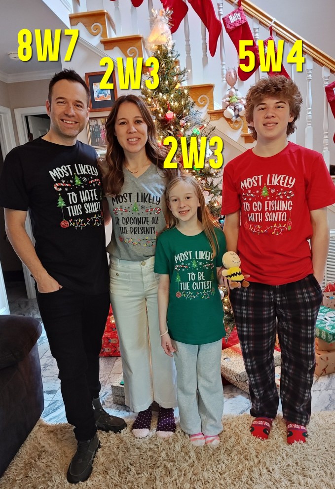 My wife is the event planner of our family: “Mostly likely to organize the presents”. Our son is the curious, activity-based one: “Mostly likely to go fishing with Santa.” Our daughter is basically a personified kitten: “Most likely to be the cutest.” And me… I don’t want to be told what to do, especially if it’s what everyone else is doing: “Most likely to hate this shirt.”