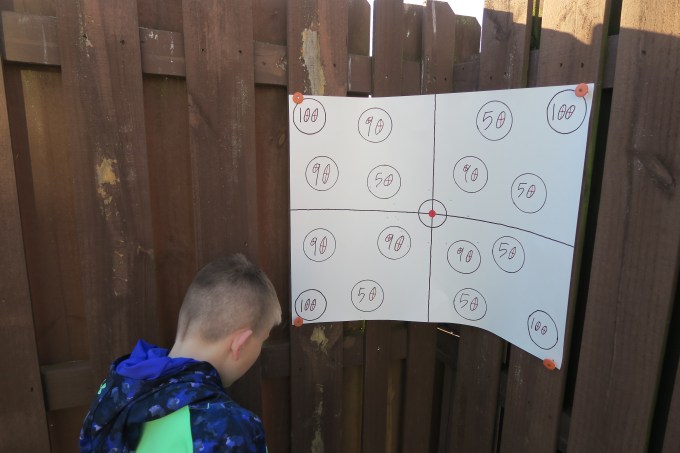 You guys thought it was hilarious when Landon shot a BB and it got stuck right there in the middle of an acorn.