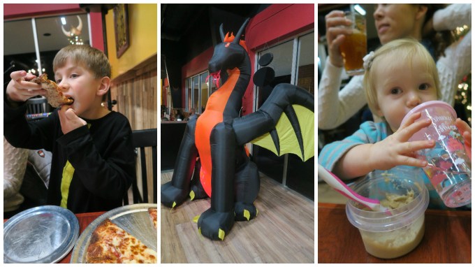 When we got home, he immediately asked, “Mommy, can we go to the Viking pizza place with the big dragon?