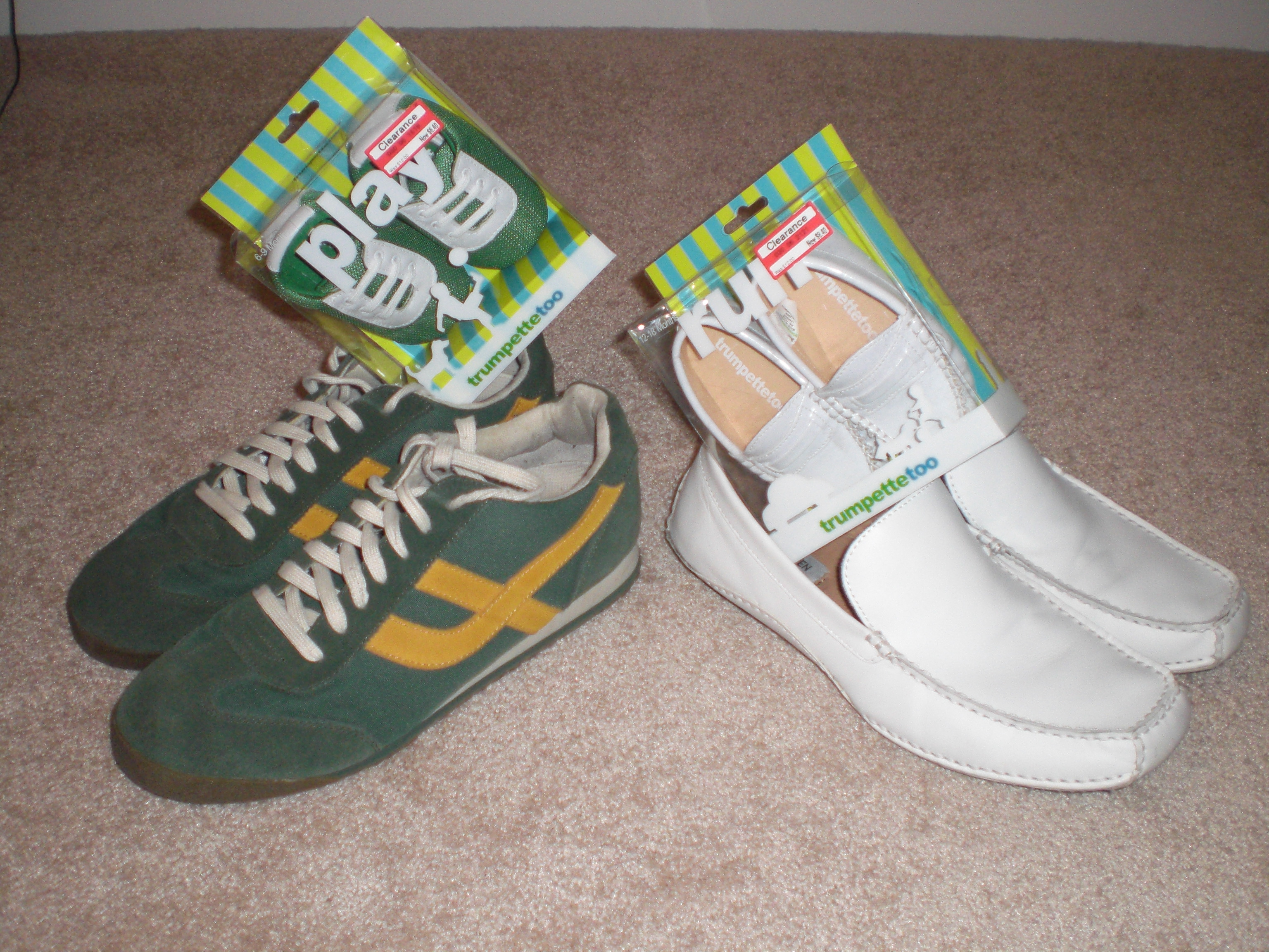 Last week as my wife and I were registering at Target, we found some shoes on clearance that not only meet the criteria, but also are essentially identical to shoes I already own. A pair of Kelly green sneakers (6-9 months, in time for Summer) and a pair of white leather loafers (12-18 months, just in time for Christmas). Like father, like son.