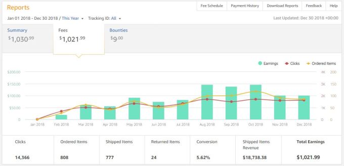 Anytime I place a link to Amazon for a product like this really cool Mama Bear t-shirt for moms, whether it’s in a description for one of my videos on either YouTube channel, or in one of my blog posts, I get a cut of the sale that is made. Even if the person doesn’t buy the actual product, as long as they buy something while they are browsing through other suggested items, I still get a cut of that sale. It’s Amazon’s way of thanking me for directing a new sale to them. In 2018, I made right over $1,000 from these links; even though I didn’t even start the program until February.See below.