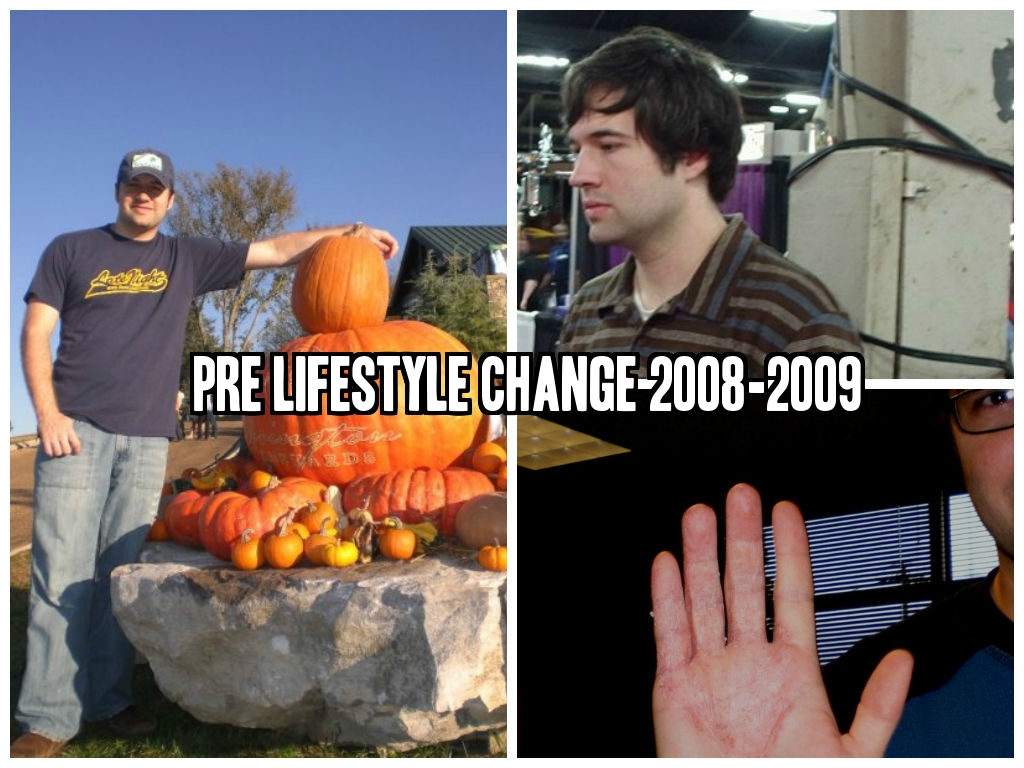 At age 27 in 2008, the year I got married, I maxed out at around 178 pounds, which took its toll on me, being 5’9”. That extra “beefiness” also came with “medically incurable” eczema (specifically called “dyshodrosis, which covered both my hands; plus acne, and again, constant allergy and sinus issues.