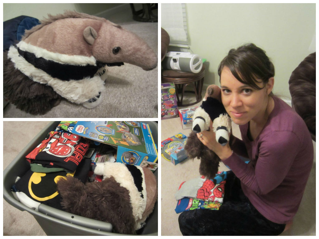 You have been asking for an anteater stuffed animal for quite a while now. So Mommy special ordered one of the Internet. It looks so bizarre!