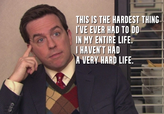 I feel like Andy Bernard in The Office when he declared, “This is the hardest thing I’ve ever had to do in my entire life. I haven’t had a very hard life.”