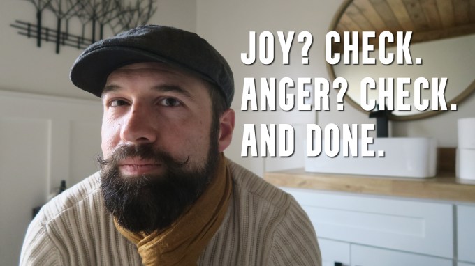 But the part about getting in touch with my emotions… well, it immediately became confusing to me. Only two emotions came to mind, regarding what I actually feel on a daily or weekly basis: Joy and anger.