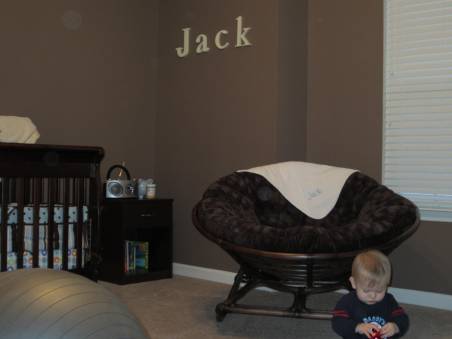 We did originally plan for his room to be a “robot cave.” My wife found this really cool 3 foot tall decal on Etsy, designed by Tweet Heart. Unfortunately, the raised texture of our walls prevented it from sticking. It was sad that Ralph the Robot couldn’t hang around. We’ll try again when we live in house with walls with normal texture.