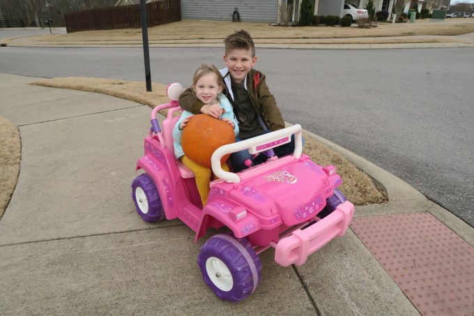 This past weekend, though the weather was barely warm enough to do so, we spent some time outside so you could play in your new Jeep you got for Christmas.