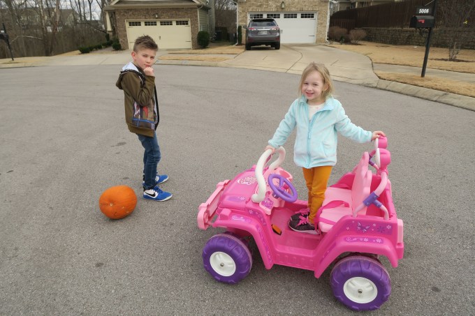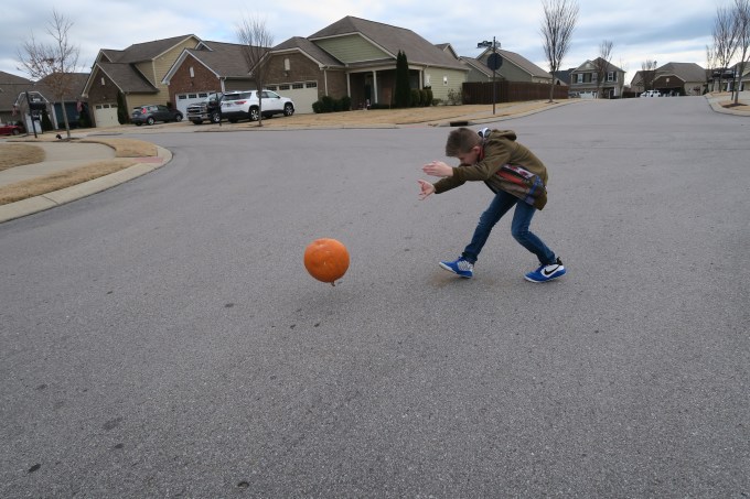 Your brother decided to take an old pumpkin that has been sitting on our front porch since Autumn and began to have fun destroying it in the cul-de-sac.