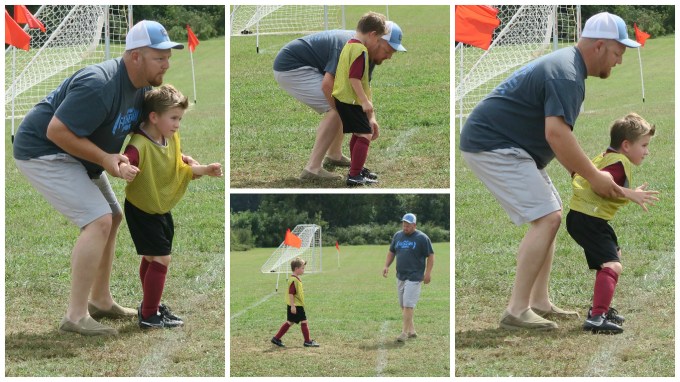 So you began kicking the ball over the line, onto the very edge of the field. As one of us adults would then move the ball off the field, you would sure enough find your way back in the game.