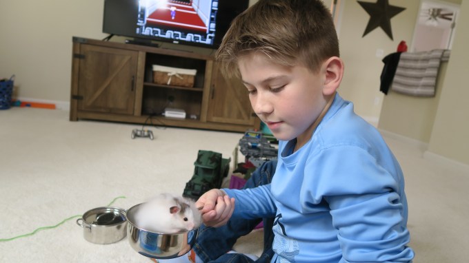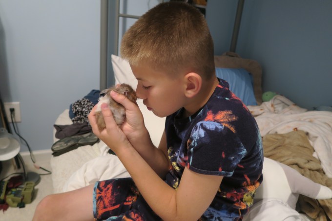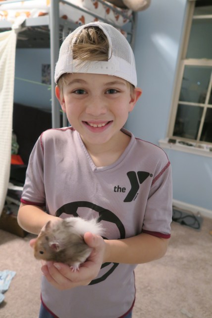 That’s when the kids like to take turns petting the hamster; which is the extent of their involvement with him.