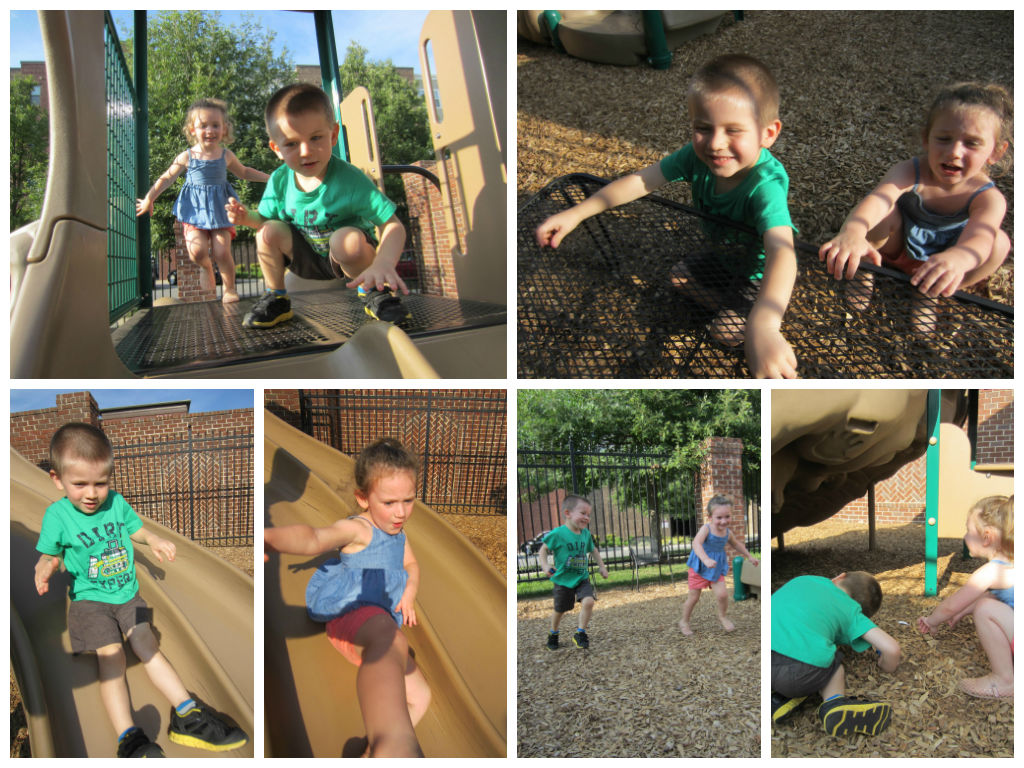 Of course, I can’t fail to mention that we were visiting some of our wonderful friends there. (You’ve grown up with them and their dog.) You were fairly oblivious to their presence until after you had consumed the famous tater tots and we were outside on the playground next to Burger Republic.